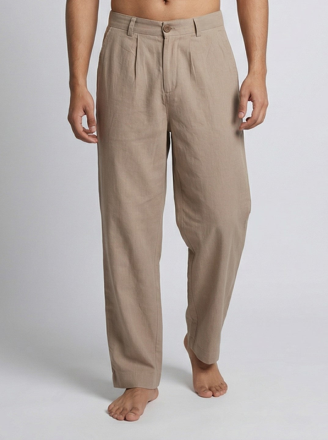 Beige Essential Wide-Leg Summer Trousers For Men's