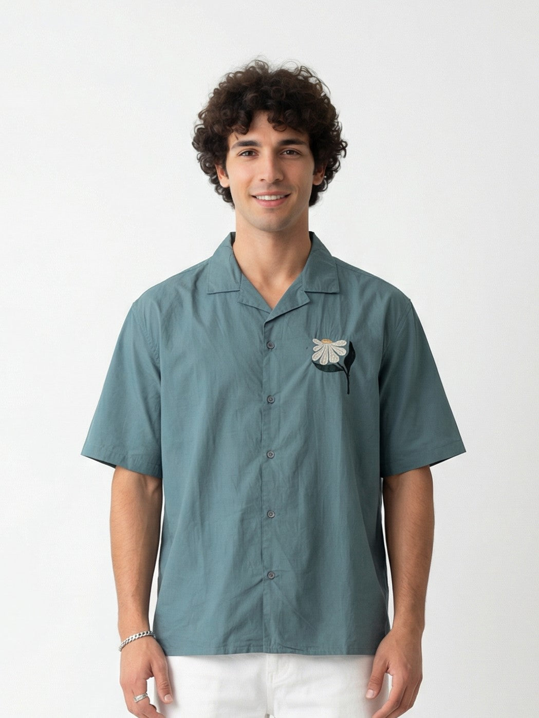 Make a statement with this audacious green floral shirt that refuses to fade into the...