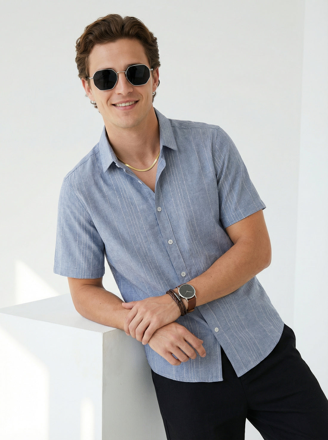Effortlessly versatile, this men's cotton shirt combines comfort with contemporary style. The relaxed fit accommodates...