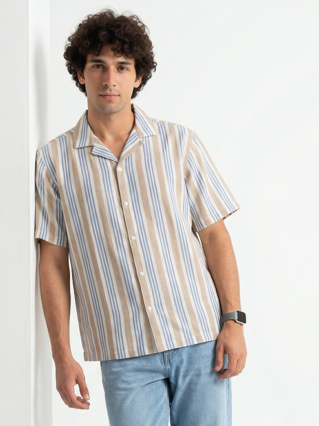 Unleash your bold side with this striking brown Cuban collar shirt that refuses to play...