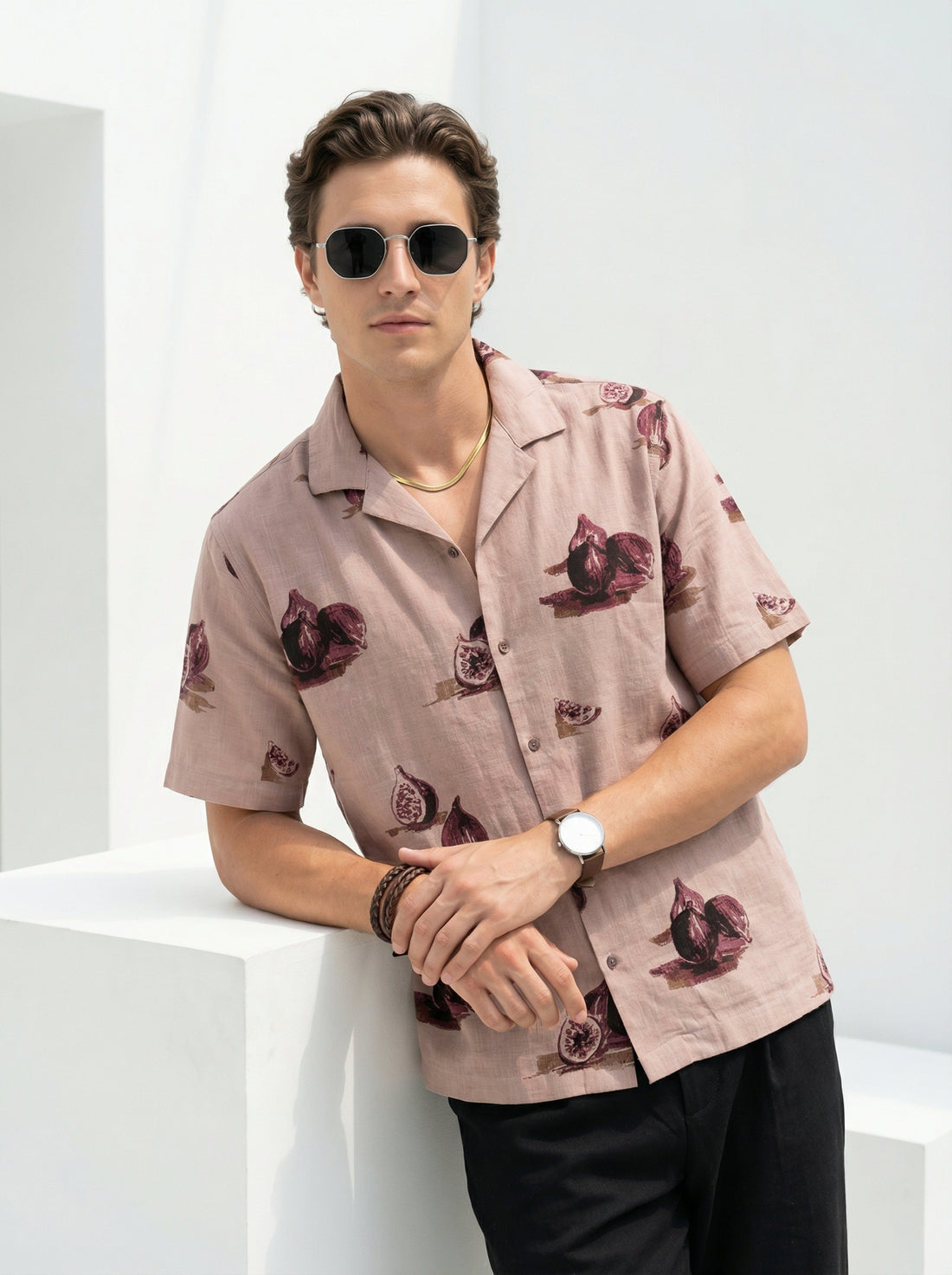Step into bold style with this Pink-hued Cuban collar shirt that commands attention. Crafted from...